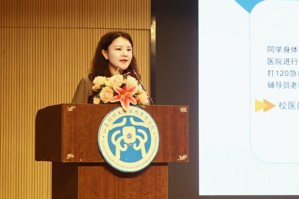 韩步彤围绕学院日常管理规定、家校联动机制、新生环境适应以及个人安全防护等内容展开讲解,呼吁家长们与孩子加强沟通,平等交流,携手共赴新的未来。